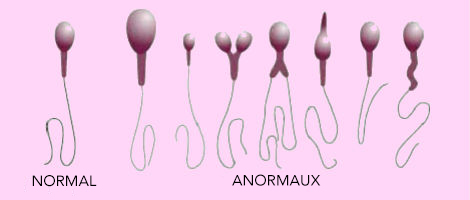 - moins de 5% des spermatozoïdes présentent une morphologie normale.